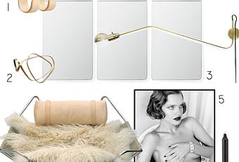 1. Perchero Curve Hook en nuestra shop / 2. Anillo Crunchy de Lanthane / 3. Espejo Fold en nuestra shop / 4. Lámpara pared de Restart Milano / 5. Fotografía de Mario Testino / 6. The Flag Halyard Chair comercializado por Carl Hansen / 7. Candelabro Nocto en nuestra shop