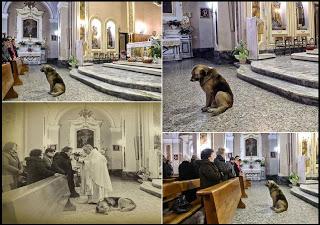 Durante las misas, el perro era uno más como todo los asistentes. Después le dejaron un espacio para que Ciccio pudiese pasar sus días sin María. Allí, los fieles y conocidos de su dueña le proporcionaban comida y agua.