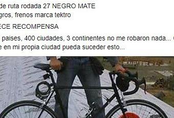 La bicicleta se trata de un estilo “De Ruta” en color negro mate, con rines negros, rodada 27 y frenos marca Tektro. El ciclista ofrece una recompensa por quien pueda brindarle información para recuperarla.