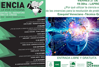 Organizado por la Red de Divulgación Científica de Córdoba, el Viernes 27 de junio a las 19:30hs en el auditorio principal del Observatorio Astronómico de Córdoba (OAC), Laprida 854, se brindará la 2da conferencia de este ciclo. La entrada es libre y gratuita. Pueden sumarse al siguiente evento de facebook para recibir un recordatorio de la charla: https://www.facebook.com/events/282228551958399