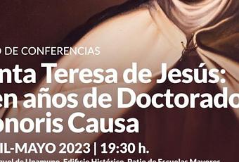 Con motivo de esta conmemoración, la Cátedra extraordinaria Domingo de Soto de la Universidad de Salamanca promueve el ciclo de cuatro conferencias: “Santa Teresa de Jesús: cien años del Doctorado Honoris Causa”, que comenzará el próximo jueves, 20 de abril, y se prolongará hasta el 11 de mayo. Las ponencias tendrán lugar a las 19:30 horas en el Aula Miguel de Unamuno del Edificio Histórico de la Universidad. La entrada es libre hasta completar aforo.