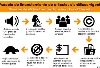 El día jueves estaré hablando sobre derecho de autor, licencias Creative Commons y su relación con investigación y repositorios académicos. Para ello traduje (vía MS Paint) los modelos de financiamiento de artículos científicos vigente y optimizado.