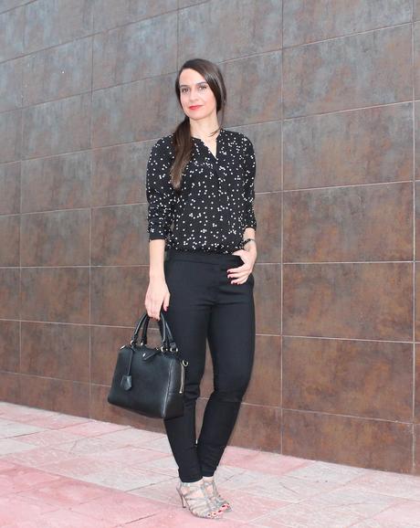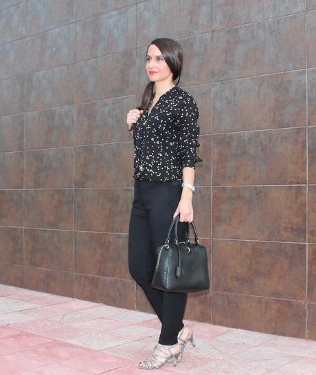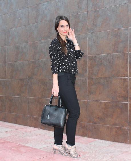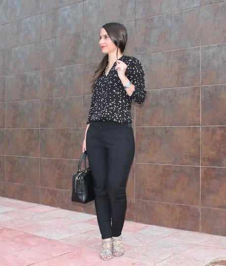 Y para acabar la semana...un look estrellado. Podría decirse que es un "almost" total black , si no fuera por las estrellas de la blusa de Mango y el estampado leopardo de las sandalias de Sfera. Os gustan los looks monocromáticos?. Ahora están muy de moda con todos los colores: total blue, total red, total white... Nos vemos el domingo con una nueva película. Hasta entonces, buen finde o...buen puente, para quienes lo tengáis :) Gracias por vuestros comentarios. Thanks for your lovely comments.