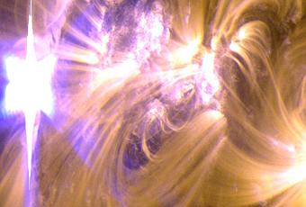 Una llamarada solar es un intenso estallido de radiación proveniente de la liberación de energía magnética asociada a las manchas solares. Las llamaradas son los acontecimientos explosivos más importantes en nuestro sistema solar; aparecen como zonas brillantes en el sol y pueden durar desde minutos hasta horas. Normalmente se puede ver una llamarada solar por los fotones (o luz) que libera, en la mayoría de cada longitud de onda del espectro, siendo las principales formas en que supervisamos las erupciones como de rayos X y luz óptica. Las llamaradas son también lugares donde se aceleran partículas (electrones, protones y partículas más pesadas). Las llamaradas más intensas son las "X-clase", mientras que el número que sigue informa sobre su fuerza; así, X-2 es dos veces mas intensa que X-1, y X-3 es tres veces mas intensa, etc. Algunas personas se preocupan por si una gigantesca "llamarada solar asesina" pudiera arrojar energía suficiente para destruir la Tierra, lo que no es realmente posible, aunque si bien la actividad solar está actualmente incrementándose hacia lo que se conoce como máximo solar, algo que se produce aproximadamente cada once años; sin embargo, este mismo ciclo solar se ha producido durante miles de años por lo que cualquier persona mayor de dicha edad ya ha vivido un máximo solar de este tipo sin ningún daño. Esto no quiere decir que el clima espacial no pueda afectar a nuestro planeta. Las llamaradas solares pueden alterar temporalmente la transmisión de señales de, por ejemplo, un satélite GPS a la Tierra, o las conocidas como “eyección de masa coronal, CME”. Una eyección de masa coronal CME, es otro fenómeno solar que puede enviar miles de millones de toneladas de partículas solares al espacio y fluctuaciones electromagnéticas sobre la atmósfera, lo que puede afectar los sistemas electrónicos de los satélites. Tres llamaradas de clase X en 24 Horas