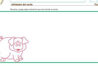 Actividad a realizar: recorta y pega algún alimento que nos brinde el cerdo.