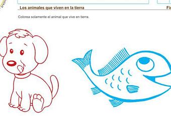 Actividad a realizar: colorea solamente el animal que vive en tierra.