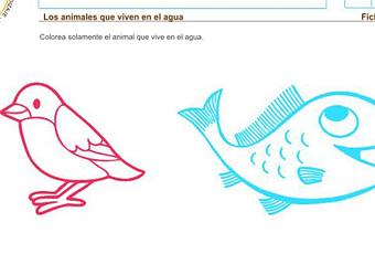 Actividad a realizar: colorea solamente el animal que vive el agua.