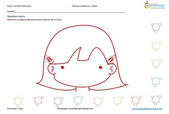 - Nuestro rostro. Mírate en un espejo y dibuja las partes faltantes de tu carita.