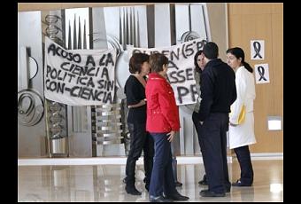 Trabajadores del CIPF, protestando por los despidos en Valencia. -Juan Navarro
