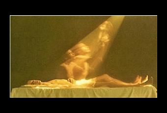 ¡Korotkov también usó un tipo de fotografía Kirlian para mostrar el momento exacto en que el alma de alguien dejó su cuerpo en el momento de la muerte! Él dice que hay una fuerza de vida azul que puedes ver al dejar el cuerpo. Él dice que el ombligo y la cabeza son las primeras partes de nosotros en perder su fuerza de vida y el corazón y la ingle son los últimos.