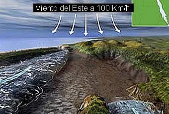 Mediante simulaciones basadas en un estudio con catorce modelos realizados por ordenador, y como parte de una más amplia investigación sobre cómo los vientos afectan a las grandes masas de agua, los científicos mostraron que el viento puede empujar y hacer retroceder el agua partiéndola en dos cuando una curva de río se funde con una laguna costera.
