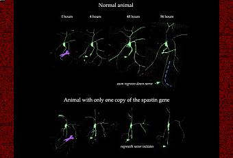 “En moscas de la fruta con dos copias normales del gen, se observó que los axones cortados se reensamblaban. Este proceso se supone que tendrá lugar si la mosca ha de sanar de traumas nerviosos generados a lo largo de una vida, como por ejemplo fruto del desgaste. Pero, curiosamente, en los otros dos grupos – moscas de la fruta con uno o dos genes anormales de espastina – simplemente no había rebrote, lo que indica que es un problema dominante”.