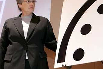 El comité del Boletín de Científicos Atómicos advirtió hoy del peligro que enfrenta la humanidad ante la amenaza nuclear y el cambio climático, y adelantó las manecillas del reloj del "Juicio Final" a tres minutos del fin.