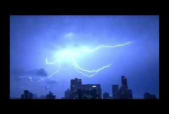 En las imágenes registradas este domingo por los vecinos se aprecia cómo poderosas y fulgurantes descargas eléctricas caen desde el cielo una tras otra, impactando en los rascacielos e iluminando el paisaje urbano nocturno.
