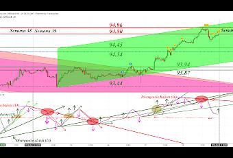 "...-Los papeles protagónicos de los niveles 94.45, 94.80, 94.96, 95.20 y 95.45 se mantienen en la misma expectativa de intercambiar sus papeles de Resistencias a Soportes y viceversa..." B- En el informe técnico del Cierre DX, Semana 38/2018 ( https://crowcurrencies.blogspot.com/2018/09/cierre-tecnico-dollar-index-dx-semana_60.html ) decía (cita textual):"...2- Si se marca un nuevo Mínimo bajo el Nivel 93.44, la profundización de la corrección bajista de la acción del precio en el DX continuará..."---La acción del precio del DX comienza la Semana 39/2018 con el completamiento de una Divergencia bajista (14) en el Oscilador MACD que tuvo su primer punto referencia a finales de la Semana 38/2018; esto, sumado a la imposibilidad de superar la entonces Resistencia franja Niveles 93.87//93.94 provoca un enérgico impulso bajista que, no obstante, no consigue producir una nueva marca bajo el Nivel referencia 93.44; a continuación, se completa una Divergencia alcista (15), también con su primer punto/referencia a finales de la Semana 38/2018, lo cual produce un efecto recuperador alcista en la acción del precio del DX traducido en nuevos intentos por superar la ya referida Resistencia franja Niveles 93.87//93.94; la conquista y superación de esta franja de Resistencia se logra al fin de forma muy enérgica después de lo cual se verifica un rally alcista que lleva la acción del precio del DX a superar de forma casi "sobre la marcha" los entonces Niveles de Resistencia ya establecidos anteriormente y también referidos, situados en: 94.34, 94.45 y 94.80... el rally alcista se detiene exactamente bajo el actual nivel de Resistencia situado en 94.96 conjuntamente con la formación de una nueva Divergencia bajista (16) en el Oscilador MACD aún vigente al cierre de la Semana 39/2018 (el Nivel94.80 ha intercambiado sus papeles de Resistencia a Soporte y nuevamente a Resistencia hasta el cierre semanal)... Todo este proceso correspondiente a la Semana 39/2018 nos deja constituido un patrón de cambio de tendencia en canal siempre referido al Horizonte Temporal de Corto Plazo...