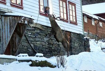 Cada invierno de los últimos tres años, Mette Kvam, de 80 años de edad, de la ciudad noruega de Aurland, ha recibido dos visitas diarias de un amigo muy especial: un majestuoso macho que parece adorar sus sabrosos bocadillos.
