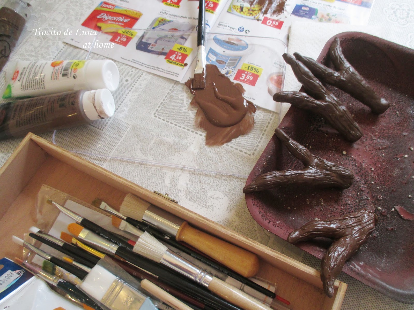Más tarde los pinté en un marrón oscuro para luego ir aclarando con varios tonos y una pátina blanquecina al final.