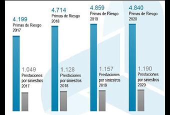 Las primas de seguros de riesgo cayeron un 0,38% frente a 2019 y los asegurados prácticamente no variaron, situándose en 20.785.225, un 0,06% menos.