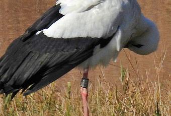 | Ciconia ciconia ; Cigüeña Blanca con anilla [DER AR351] ; Cigonya blanca ; White Stork . En els Aiguamolls de l'Empordà (Girona) 27.1.2023. |
