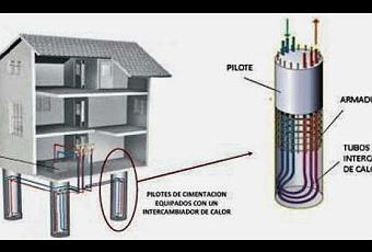 Este tipo de cimentaciones se basa en el aprovechamiento de la temperatura constante del terreno a poca profundidad para mejorar el rendimiento de las bombas de calor. En invierno transfiere calor del subsuelo al edificio, mientras que en verano funcionaria a la inversa transfiriendo el calor del edifico al subsuelo, refrigerando al edificio.