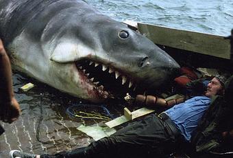 Dos enemigos irreconciliables se toman un descanso en una de las escenas cumbre de "Tiburón", Robert Shaw y la bestia mecánica a la que llamaron cariñosamente Bruce. La historia pudo ser muy diferente y ambos pudieron no ser los protagonistas de esta intensa historia. El actor porque se pensó primero en Lee Marvin y Sterling Hayden para el papel de Quint y, el temible escualo, porque los productores tenían la cándida idea de emplear tiburones reales "domesticados". Al final, la elección tanto del reparto como de la amenazante criatura encajaron a la perfección en la película, que el tiempo ha transformado en una obra maestra, si es que alguna vez no lo fue.