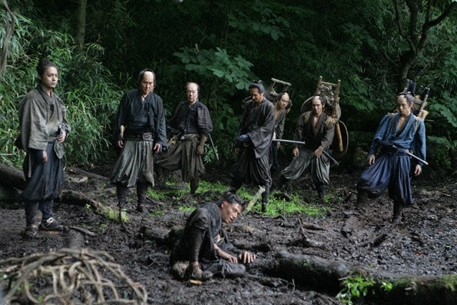 En si la historia no es compleja, ni rebuscada, trata sobre los 13 del titulo quienes tienen que matar a un sadico burocrata familiar del shogun (Goro Inagaki totalmente despreciable), asi que mientras el habil samurai Shinzaemon (Koji Yakusho, muy bien) es convencido de ejecutar el asesinato se nos muestran muchas de las atrocidades que hace Naritsugu lo cual hace que lo odiemos, en tanto Shinzaemon tambien se siente emocionado por tener una nueva mision, como el Lord siempre viaja con un mundo de guardaespaldas no podria solo por lo que comienza a reclutar un grupo que le ayude, asi se le une su sobrino aficionado al juego, un ronin que solo quiere sepultar a su mujer y vivir bien lo que le queda de vida, su mejor alumno y el discipulo de esté, dos samurais novatos más y unos sirvientes que se especializan en explosivos, samurais de la vieja escuela y hasta un hombre que vive en el bosque que bien pudiera ser un espiritu del bosque, de aqui pues solo sigue ver los acontecimientos hacia su cantado fin.
