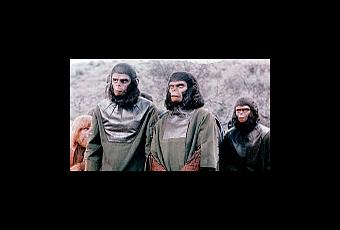 BATALLA POR EL PLANETA DE LOS SIMIOS (BATTLE FOR THE PLANET OF THE APES, EU, 1973)Si en la película anterior teníamos que admitir que en solo veinte años los simios habían evolucionado de tal manera y lo pensábamos demasiado no habíamos visto nada, en esta última película de la saga se nos exige que aceptemos que en diez años los humanos han sido derrotados y los simios están subiendo, que todos ya saben leer, escribir, etc., en pocas palabras que ya alcanzaron el nivel de evolución que tenían en el año 3978, los simios que pelearon en la película anterior ya son tan evolucionados como Caesar (de nuevo Roddy McDowall) y los humanos sobrevivientes ya van a convertirse en los fanáticos religiosos armamentistas de la segunda parte de la saga, y por desgracia la cinta es tan mala que nos fijamos en todos esos detalles ya que no va para ningún lado, se plantean varias cosas que nunca termina de cuajar, como dicen por ahi.