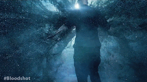 BLOODSHOT (ÍDEM, EU - CHINA, 2020)Al inicio de "Bloodshot" del director David S. F. Wilson con un personaje salido de los cómics pensé que podría estar ante una palomera cinta de accion, de hecho nunca espere mas que eso, pero oh no, estaba tan equivocado, no inicia tan mal, una escena de accion donde se muestra que el soldado Ray Garrison/Bloodshot (Vin Diesel actuando pésimamente como acostumbra o peor quizá) es la mera chol@, puede el solo con un grupo de terroristas y vemos mucha cámara lenta, despues su idílica vida con su esposa Gina (la bella Talulah Riley) que se acaba cuando un malo maloso (desperdiciado Toby Kebbell) que se presenta bailando la canción "Psycho Killer" en el mejor momento de la cinta, mata a su mujer y a él mismo rompiendo el cliche de dejar vivo al tipo que juro venganza, al tiempo es resucitado con tecnología por el genio Emil Harting (Guy Pearce correteando la papa), convertido en un arma biomecanica donde los nanitos de su sangre regeneran de inmediato cualquier herida.
