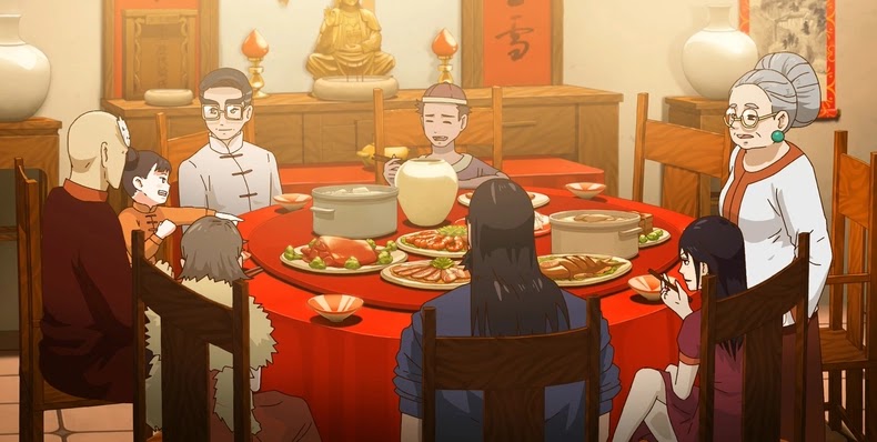 CHIAKAN-MOFEI (ÍDEM, TAIWAN, 2020)Una reunión familiar, una comida de varias generaciones chinas, una niña malcriada y llorona, una abuela consentidora y un abuelo estricto es lo que el director Lin Shan Yi nos presenta en este cortometraje de animación tradicional que brilla por el diseño de las pinturas de brocha china de Lee Chun Huan que resalta por mucho de la sencilla animación principal de Lin Jui Hsin que no deja de ser funcional y bonita en una historia de este estilo, el capricho de la nieta hace que los abuelos expertos en artes marciales se enfrenten con resultados muy interesantes pero que alcanzan su cota máxima al recordar como se conocieron y enamoraron.