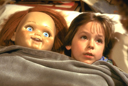 Revisando en la colección de peliculas vi "Chucky, El Muñeco Asesino" (menudo nombrecito que le pusieron en español) por lo que no pude evitar darle una checadita, y debo decir que la cinta es mucho mejor de lo que recuerdo, es cierto que no pasa de ser un juego parodico en la que un simple juguete para niños en realidad resulta ser un asesino serial que solo mata por placer y además sadicamente, lo cual aunado a que es una buena cinta de terror con sus clasicos sobresaltos y con un humor guarro, mala leche, negro, que quiza a muchas personas no les guste pero que esta bien usado. Además el muñeco de marras me causa escalofrios, precisamente por ser un muñeco dizque "bonito" que debe gustar a los niños y debe acompañarlos en su recamara, inclusive en la cama, aunque supongo que eso se debe a que siempre he tenido cierta renuencia hacia los muñecos/muñecas de ese tipo, especialmente los que tienen esa mirada que "sigue", bhruuu...