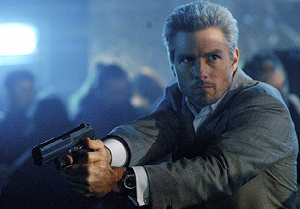 COLATERAL: LUGAR Y TIEMPO EQUIVOCADOS (COLLATERAL, EU, 2004) Sigo con reseñas de cines ya que la musica y el humor lo dejare de lado un tiempo debido a un acontecimiento muy doloroso y ademas no me fui de vacaciones y tengo mucho tiempo libre en casa asi que ¿que mejor que aprovechar y ver varias peliculas? se oye bastante friki pero es mi hobby. Ahora me toco ver una pelicula que salio hace varios ayeres pero que no se siente para nada vieja, de hecho me parece que ahora la cinta se siente más actual que antes puesto que el tema de matones y narcotrafico esta a la orden del dia, además Michael Mann no es un director que haga cine majestuoso pero sabe entretener y sus peliculas a pesar de ser totalmente Hollywoodenses no son tan tontas, debo aclarar que el director no es de mis favoritos y que a mi parecer a tenido aciertos en su carrera pero tambien ha tenido unos baches grandisimos que muestran su intermitencia a la hora de hacer cine, quiza las buenas cintas son chiripa pero a final de cuentas le salen porque las intenta ¿que no?Y de que va? Estamos en Los Angeles, ahi vive el taxista Max (Jamie Foxx, bien) quien pasa sus noches conversando con sus clientes y contandole sus sueños (muertos ya, pero solo él lo sabe), hasta ahi llega Vincent (Tom Cruise luciendose) con su traje a la medida, un porte majestuoso, una seguridad envidiable y un profesionalismo que ya quisieramos que tuviera un mexicano (el que sea), Vincent pide un taxi que resulta ser el de Max y lo paga para toda la noche ya que tiene que hacer varias escalas pero al llegar al primer lugar las cosas se salen de control y Max se da cuenta de que Vincent es un asesino a sueldo y que sus escalas simplemente son victimas,