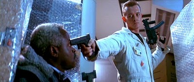 DURO DE MATAR 2 (DIE HARD 2, EU, 1990)Esta secuela agarra practicamente la misma historia y la traslada a un aeropuerto, al mismo tiempo que todo se hace más grande; el escenario, la cantidad de personajes, las explosiones, los muertos, el numero rehenes, chistes.... pero es un error clasico de Hollywood pensar que más o más grande es igual a mejor, esta cinta es la prueba ya que no solo se ha perdido el factor sorpresa sino que tambien se pierde el suspenso que tenia aquella primera parte y sobretodo porque John McClane pierde en humanidad para ganar en heroe de acción, me refiero a que en "Duro de Matar" McClane era un policia "duro" que obligado por las circunstancias tenia que hacer cosas extraordinarias (para una persona normal), pero que en cada pelea salia lastimado y era cuidadoso sin hacer cosas ridiculas que obviamente lo llevarian a la muerte, es por eso que McClane quedaba como santo Cristo apenas sobreviviendo al grupo de terroristas/ladrones.