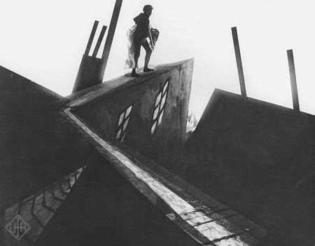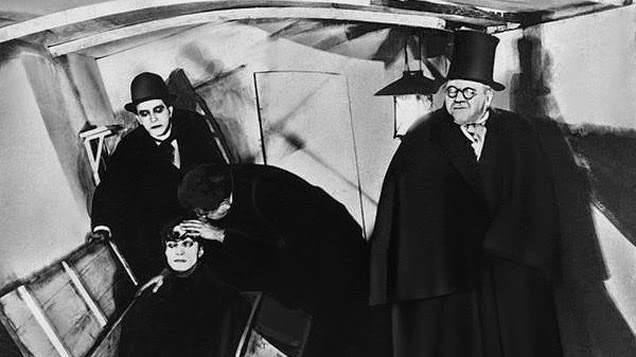 EL GABINETE DEL DR. CALIGARI (DAS KABINETT DES DR. CALIGARI, ALEMANIA, 1920)Sorprendente, tremenda joya que inicia el expresionismo alemán y que además es considerado uno de sus máximos exponentes, me atrevo a ir mas allá y decir que es uno de los máximos exponentes del séptimo arte, esta cinta no solo da marcha de manera oficial al expresionismo alemán sino que usa muchas herramientas que se siguen usando, emulando y copiando en la actualidad inclusive por directores de renombre, brincándome un poco en esta revisión a los inicios del cine de terror me topo con una obra mayor dirigida por Robert Wiene que usa todos los recursos disponibles y nos entrega una obra tan enfermiza como absorbente, con una historia que va desde el suspenso, al thriller y al terror, por mencionar solo algunos, además de mostrar guiños de algunos otros que apenas estarían por aparecer.
