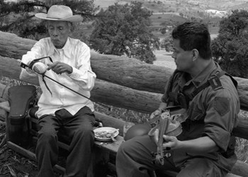 La pelicula comienza mostrandonos a Don Plutarco (Ángel Tavira, muy bien), su hijo (Gerardo Taracena) tocando mientras su nieto pide unas cuantas monedas a los oyentes, regresan a la sierra solo para encontrarse conque los militares han llegado a su pueblito y se han apropiado de todo, lo hacen buscando rebeldes y estan en lo correcto ya que ahi estan preparando una guerrilla, el problema es que ahora los militares los tienen en sus manos ya que las municiones se quedaron en el pueblo, la guerrila intentara hacer un ataque desesperado pero Don Plutarco tiene un plan y le ruega a su hijo que espere, nadie cree que puede lograr algo pero Plutarco va al pueblo y se gana la confianza de los soldados gracias a su talento tocando el violin.