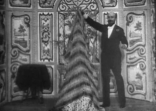 Georges Melies entra en escena como mago y pone un periódico y una silla para mostrar que no hay truco y pasa a su asistente Jeanne d'Alcy, que después seria su esposa, se sienta y el mago pasa una manta por encima, al quitarla la dama ha desaparecido y enseguida aparece un esqueleto frente a nuestras narices, de nuevo pone la manta y al quitarla la chica ha vuelto, la magia del cine.