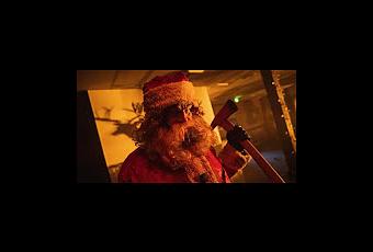Es decir, el intento de Begos de parecer intelectual y conocedor no da en el blanco, y como los personajes aunque parecen vivir en los años ochenta se comportan como jóvenes adultos actuales hablan de cosas que son anacrónicas para estos tiempos, lo que sugiere que el director, guionista y productor apuesta por un nicho muy especifico como target de su película, algo que supongo de antemano ya estaba dicho, ya que se trata de un Santa Claus animatronico que regresa a su programación anterior de guerra y comienza a matar a todos solo porque si. Escribiendo lo anterior pareciera que la cinta no me gusto, pero lo cierto es que la disfrute, pasando ese tramo inicial cansino donde solo vemos a estos dos deambular de aquí para allá con platicas superficiales que se creen profundas y que resultan repelentes, la cosa mejora muchísimo cuando por fin el santa robot (Abraham Benrubi) despierta y comienza a escabecharse cristianos, o en este caso rockeros underground con dejos progresista.