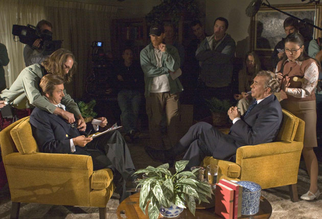 David Frost (Michael Sheen, bastante bien) le hizo al ex-presidente de los Estados Unidos de America Richard Nixon (brillante Frank Langella) quien apenas habia sido obligado a renunciar por culpa del escandalo del Watergate, la cinta inicia mostrando las semanas previas a la entrevista con Frost haciendo hasta lo imposible con tal de conseguir una entrevista con Nixon, lo que al fin le daria el reconocimiento por parte de la critica y el publico que siempre ha deseado, a su empresa se unen James Reston Jr. (Sam Rockwell, bien), Bob Zelnick (Oliver Platt) y John Birt (correcto Matthew Macfadyen) quienes le ayudan a hacer la investigación y a preparar la entrevista. Claro esta que el climax de la cinta se encuentra en las entrevistas que Frost le hace a Nixon (si, fueron varias o mejor dicho una dividida en partes) donde siempre es una pelea intelectual donde Frost quiere destapar a Nixon para que acepte su culpabilidad en el caso, y donde el dinosaurio politico pone toda su inteligencia y colmillo para poner a Frost como un idiota frente a todos.Asi en un principio Frost tiene que perder frente a un maquiavelico Nixon con todo el mundo reprochandole, incluido su equipo, mientras tiene que sacar dinero hasta de las piedras para pagarle a Nixon lo convenido pero cada vez se prepara más y gracias a una llamada del propio Ni