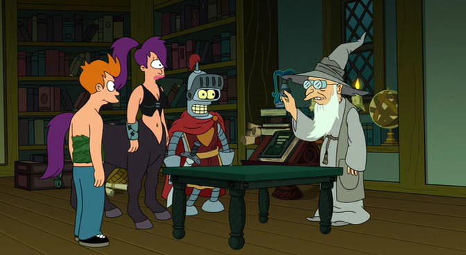 que la empresa de la terrible "Mama" suba sus precios, el equipo de Planet Express se dirige a la misma mina de materia oscura para averiguar que esta sucediendo donde descubren el terrible origen de la materia oscura y que "Mama" esta haciendo que el mercado se colapse para ganar más dinero, en tanto que Bender se encuentra jugando "Calabozos y Dragones" para ver si tiene imaginación, pero pierde la noción de la realidad y es llevado a un manicomio, el grupo decide destruir la fuente de poder de la materia oscura pero debido la energia de esta la mente de Bender los lleva a un universo alternativo donde el grupo se unirá con sus nuevas "personalidades" para destruir a "Mama" en una parodia del "Señor de los Anillos", para despues volver a la realidad donde otro secreto será revelado.Para ser franco la pelicula es muy divertida, con chistes muy seguidos que de seguro les sacarán una carcajada, con un ritmo vertiginoso casi frenetico que no da tiempo a pensar que tan sin sentido es lo que sucede en pantalla y con los tipicos chistes que ocupan la complicidad del espectador para ser disfrutados, ya sea porque se ocupa conocimiento acerca del tema o por la sencilla r