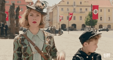 El problema es que despues de esto la cinta da un tremendo bajón cuando se rebele un personaje mas que es escondido por la rebelde madre de Jojo (Scarlet Johansson, bien), la judía Elsa (la hermosa Thomasin McKenzie) que no solo se enfrenta a Jojo sino que demuestra una fortaleza no acorde a su edad, de aqui la historia va por derroteros mas conocidos y menos arriesgados, dejamos la locura y la hilarancia de reirnos de los nazis al obvio melodrama que sabemos donde terminara,con todo y cambio de tono en la fotografía y el soundtrack, lo que no se puede negar es que Waititi logra algunas muy buenas escenas como la llegada de la SS a la casa, o las tensantes cenas de Jojo con su madre, pero algunas otras son reiterativas, de cualquier forma al final la situacion se compone un poco con algunos aliados sorpresivos, una dolorosa imagen de unos zapatos y por supuesto ese final donde se ve a los civiles alemanes, ancianos, mujeres y niños, defender la ciudad ante la inmisericorde llegada de los americanos cuando la guerra ya estaba perdida.