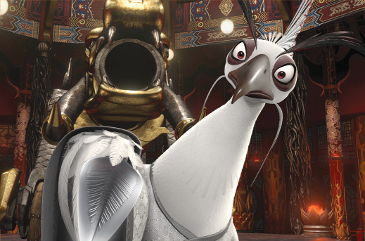 Y de que va? El guerrero dragon Po (voz de Jack Black) es alentado por su maestro (voz de Dustin Hoffman) a encontrar la paz interior pero el hecho de estar recordando cosas de su incierto pasado le complica bastante las cosas al panda, en tanto que el pavo real Shen (voz de Gary Oldman) ha vuelto de su exilio, contado en la introducción de la pelicula en una animación exquisita, sin duda lo mejor de la pelicual, ha desarrollado armas con las que mata a los maestros del Kung Fu y Po junto a los cinco furiosos (voces de Angelina Jolie, Seth Rogen, Lucy Liu, Jackie Chan y David Cross)debe detenerlo aunque en el camino Po descubrira su terrible pasado y el porque su papa es un ganso (James Hong).