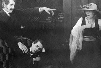 LA CONCIENCIA VENGADORA (THE AVENGING CONSCIENCE, EU, 1914)Ahora vamos a Norteamérica para ver un nuevo acercamiento del maestro D.W. Griffith al maestro Edgar Allan Poe, es una mejora con respecto a la excesiva sencillez de "The Sealed Room" pero aun queda muy lejos de lograr el terror, el suspenso y el viaje psicológico de Poe, lo que si queda claro es que Griffith evoluciono muchísimo técnicamente y con esta cinta se prepararía ya para las grandes ligas, el año siguiente entregaría la majestuosa "The Birth of a Nation", y eso ya se nota, el montaje, los elaborados y cuidados intertitulos, los juegos y efectos con la cámara que van mucho mas allá de trucajes y trucos, la historia dramática y los personajes bien dibujados y además complejos para la época.