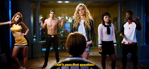 Por supuesto el muchacho no colabora y las cosas se salen de control, lastima que en este tramo final las cosas se pongan demasiado locas y sin sentido pero aun asi son entretenidas, sin duda lo mejor es el humor negro antes del clímax de la cinta, ese humor gamberro donde se nos presentan todos los clichés de las películas de terror a propósito para que nos riamos de ellos, el grupo de satánicos esta conformado por la sexy y tonta porrista (Bella Thorne, bien), el guapo que tiene que quitarse la playera porque si (Robbie Amell), la asiatica rara y depravada (Hana Mae Lee) y el negro chistoso (Andrew Bachelor) que abrazan con