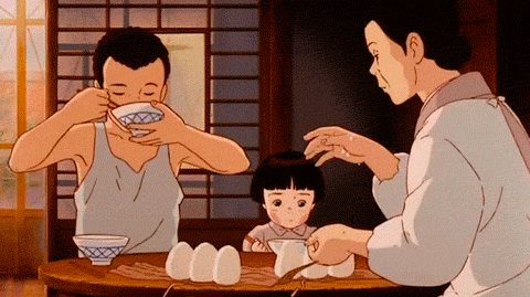 Y es que Takahata retrata fielmente la novela de Akiyuki Nosaka con una naturalidad que deja perplejos, Nosaka escribió la manera casi autobiograficamente cargando con el fantasma de vivir lo mismo y haber sido incapaz de salvar a su pequeña hermana, tenia claro el mundo que tuvo que vivir, la indolencia de las personas, la indiferencia de los adultos, los pueblos devastados, el cielo negro y la tierra derruida, pero Takahata también lo vivió, sufrió los bombardeos como Nosaka, tuvo que huir y vio los horrores de la guerra, algo les quedo muy claro, esta destroza el espíritu humano, o quizá solo saca lo peor de ellos, lo que se encontraba mas oculto en su ser, por ello la historia destila esta misantropia sin concesiones, aquí no hay buenas personas, ángeles o santos que lleguen al auxilio de los pequeños, solo hay crueldad por parte de todos los que conocen, aunque sea en diferentes formas y niveles.