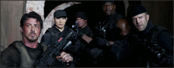 situaciones cuando toda la pelicula debio haber sido un chiste, intenta dar un mensaje y estas peliculas no son para eso, es muy incoherente y no me refiero a las escenas de acción, la sangre digital se ve pesima y algunos efectos se ven viejos, los villanos son pesimos, pero lo peor de todo es la pesima dirección de Stallone ya que corta cada dos segundos y hace acercamientos en cada linea, parece que agarro la moda de videoclip. Quiza lo unico salvable sea la escena donde se juntan Stallone, Schwarzenegger y Willis donde se autoparodian o algo asi aunque advierto que tampoco es la gran cosa y dura si acaso dos minutos, no vayan a pensar que salen toda la cinta y ademas sirve como propaganda para el Gobernator.Calificación: 5.5 - No Vale la Pena