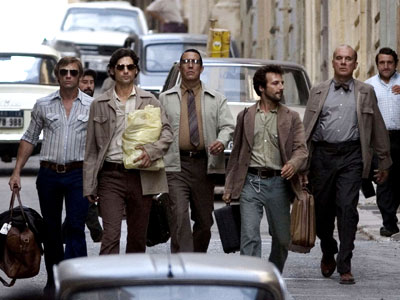 Otra cosa que me gusto bastante es la ambigüedad de los personajes y las situaciones, Spielberg no conciente ninguno de los lados, y al final los israelitas terminan siendo tan violentos como los otros, ese se pone de manifiesto con la convivencia de los dos grupos en cierto cuarto "seguro" en una misión, y vemos un lado de Spielberg que no conociamos, uno violento, polemico, critico, pesimista, crudo, paranoico y enfermizo, pero tambien uno que sabe usar perfectamente el suspenso y las mejores cualidades del thriller, al igual que el drama en espacio cerrado. La cinta comienza con los acontecimientos de la masacre de Munich para despues dar paso a un estado israeli que quiere venganza porque no pueden permitir que el mundo los vea debiles, asi que arman un equipo al que les dan once objetivos que supuestamente planearon la mencionada masacre, este equipo esta formado por el pacifico judio-aleman Avner (Eric Bana, muy bien), el explosivo Steve (Daniel Craig), el profesional Hans (Hanns Zischler, bien), el juguetero convertido en arma explosivos Robert (Mathieu Kassovitz, bien) y el "limpiador" Carl (Ciaran Hinds, bastante bien), quienes solo tienen contacto con la inteligencia israeli por medio de Ephraim (Geoffrey Rush, perfectamente detestable) y con la información de Louis (Mathieu Amalric) un vendedor de información al mejor postor.