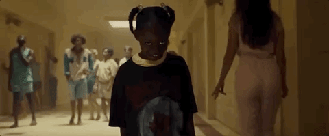 Y asi mientras vemos a los Wilson convivir con una familia blanca privilegiada a ver quien llega mas lejos, ellos también son acomodados, la noche les ofrece cuatro extrañas figuras que no se inmutan ante las amenazas y que comienzan un allanamiento de morada bien logrado donde vemos a los dobles de toda la familia liderados por Red (Lupita Nyong'o) que es la única que habla, aunque lo hace como si hubiera sufrido algun daño en la garganta, asi la típica familia nuclear norteamericana con padre bromista, madre preocupona, hija adolescente pedante (aterrorizante Shahadi Wright Joseph) y niño imaginativo (Jason Wilson) son atrapados por sus contra-partes y luego obligados a escapar si no quieren morir en un extraño juego, pero esto es solo la punta del iceberg ya que la familia Tyler también es atacada por su clones, una situacion que se expande por todo el país, y que culmina en un enfrentamiento personal que emula valientemente y brillantemente un dueto de ballet para entregarnos un revelación final terrorífica que no puede dejar indiferente a nadie.