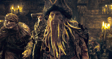 PIRATAS DEL CARIBE: EN EL FIN DEL MUNDO (PIRATES OF THE CARIBBEAN: AT WORLD'S END, EU, 2007)Despues del emocionante final del capitulo uno esperaria más emoción y más momentos divertidos, por desgracia lo unico que entrega esta parte es una historia confusa que se dedica a dar vueltas sobre el mismo tema una y otra vez, con aparición de personajes que no aportan nada a la historia y que además son demasiados, y esta vez si se resiente su larguisimo metraje, la batalla final se hace tan larga que uno deja de ver la cinta por ver el reloj, asi mismo el capitan Sparrow de Depp tiene menos protagonismo debido a la gran cantidad de personajes lo que viene a afectar de sobremanera a la cinta ya que esté personaje es el alma de la saga, y por otro lado tampoco se entiende que se hayan olvidado de tal manera del triangulo ¿o cuadrado? amoroso que habian creado, con muchas salidas facilonas, tanto asi que eliminan a un personaje haciendolo cambiar de caracter de la noche a la mañana de forma nada creible.