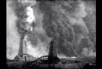 PUITS DE PETROLE A BAKOU. VUE DE PRES (IDEM, FRANCIA, 1898)El cortometraje 1035 de los Lumiere muestra mucha mas madurez, estamos ante la muestra lirica y poética de la belleza de un hecho nefasto, al mismo tiempo que muestra la horripilación del asunto, puede que para ellos simplemente sea algo que se veía bien, el como las fumarolas cubren el cielo, el como se esta quemando una cantidad ridícula de recursos, el como a nadie se le hace extraño que el cielo se nuble y oscurezca y el cielo se pierda en medio de una nube de contaminación, ahora verlo es terrible, bendita ignorancia. Por lo demás, los Lumiere saben donde poner una cámara y no se niega, la imagen es poderosa con todo lo que representa y que nos recuerda, el boom de la era industrial y el comienzo legal de la esclavitud y la destrucción del planeta, un corto bien hecho. Calificación: Bien