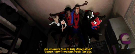 SPIDER-MAN: UN NUEVO UNIVERSO (SPIDER-MAN INTO THE SPIDER-VERSE, EU, 2018)No se como comenzar la critica, primero diré que me parece una pro-positiva y refrescante cinta animada, y que por fin alguien se animo a trasladar ese sentimiento de cómic a la pantalla grande, el estilo de la animación es maravilloso, el espíritu de cómic ahí esta, las viñetas, los globos, los sonidos de golpes y choques, de verdad me tenia ganado, de hecho lo hizo desde la escena de créditos en "Venom" aunque la historia no me convencía mucho, tampoco el humor, y he de aceptarlo, me equivoque, el humor esta bien logrado, Phil Lord lo hace bien, pero aunque tiene momentos logrados hay otros donde peca de infantil como en esa escena revelada en "Venom", y la historia, es algo que me queda a deber, comienza como la típica película de Spidey de las que hemos tenido muchísimas en pocos años y despues se convierte en una locura que uno acepta y disfruta sin cautela, es esplendido, ver muchos spider-man en pantalla es algo genial y que me remonta a mi infancia con esa serie animada muy divertida y ya olvidada por todos, tan olvidada que no hay referencia a ella aquí.