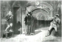 El tipo trata escapar pero invocan unos espectros, el caballero se rinde y todo desaparece, ante el una bella mujer de la que queda prendado que se transforma en bruja y de nuevo los espectros, vuelve el cobarde que huyo solo para terminar peor y al final las burlas del demonio son detenidas con una cruz. Terror, locura, apariciones, efectos especiales, imágenes desquiciantes, demonios, espectros, brujas, demonizas hermosas, caballeros desesperados, una cámara fija y cantidad de trucos que van mas allá del "stop trick" hacen de esta obra de Melies lo mejor que le he visto, mejor que la mayoría del cine de terror actual, en realidad el demonio da escalofríos y no es otro que el propio genio, al igual que su futura esposa que aparece como de costumbre. Calificación: Muy Bien